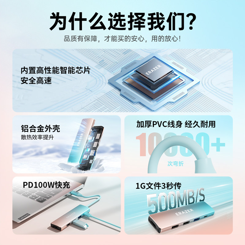 联想生态品牌异能者typec扩展坞hdmi投屏转换拓展usb分线器集线网线多口转接头适用华为苹果17笔记本电脑iPad