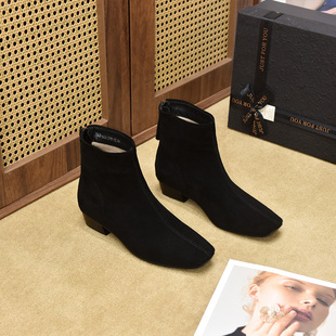 靴超软羊皮切尔西靴B7E1DDD5 瘦瘦短靴加绒时装 百丽女靴冬季 新款