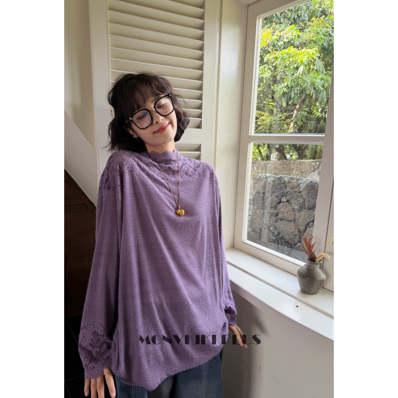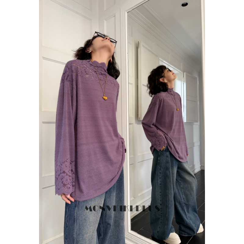 魔女MoNvKiKiPlus「天后」大码 1868 微胖高领蕾丝抓毛上衣T恤