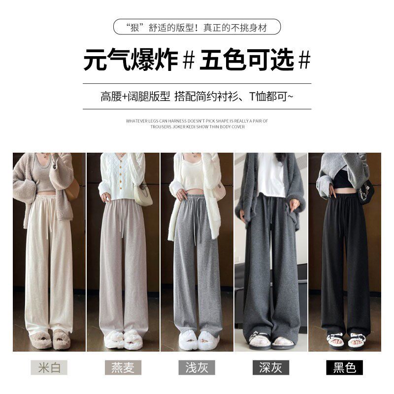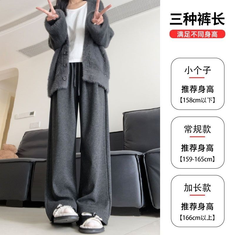 软糯阔腿裤 灰色糯米裤 窄版 高腰垂感慵懒休闲直筒裤 女2025春秋冬季