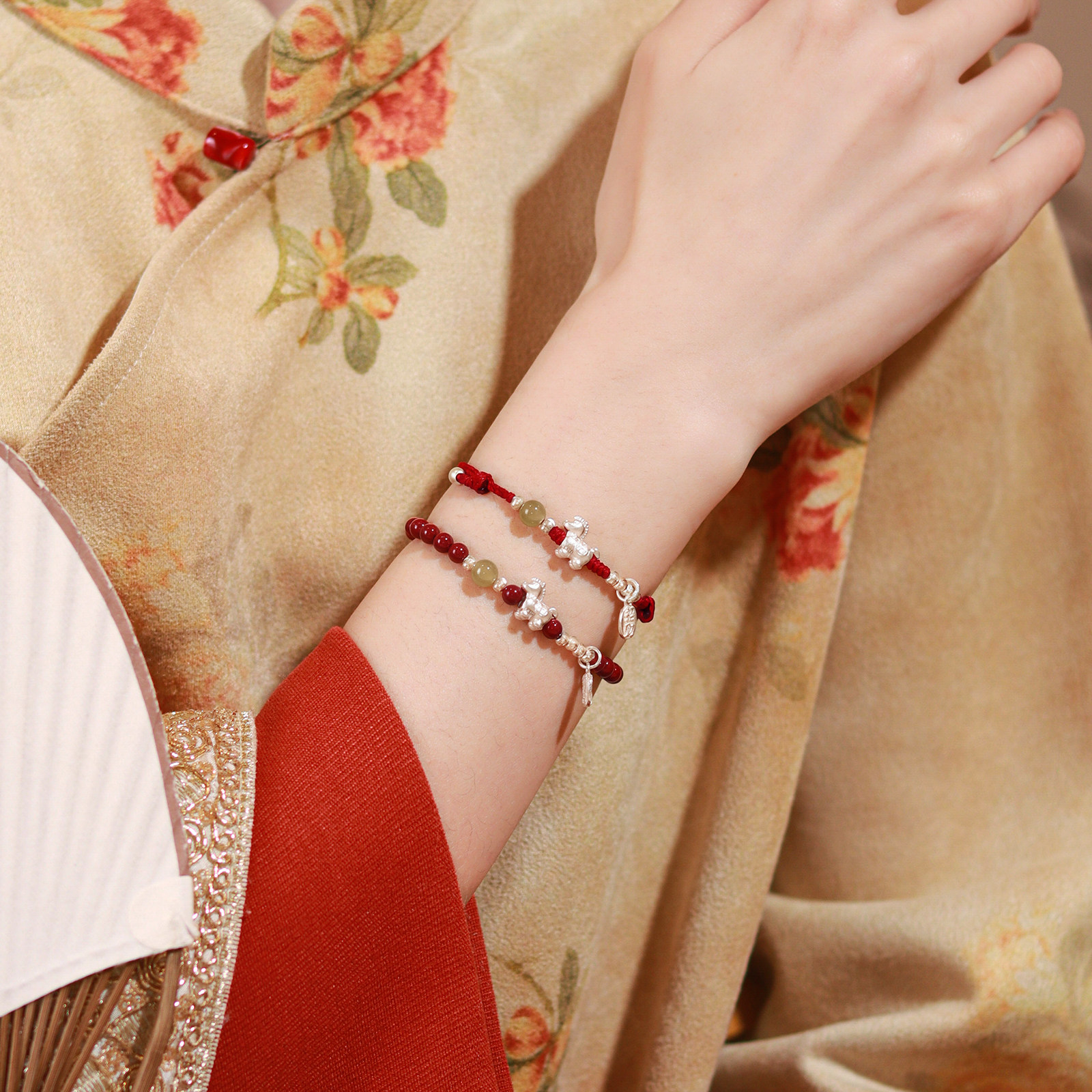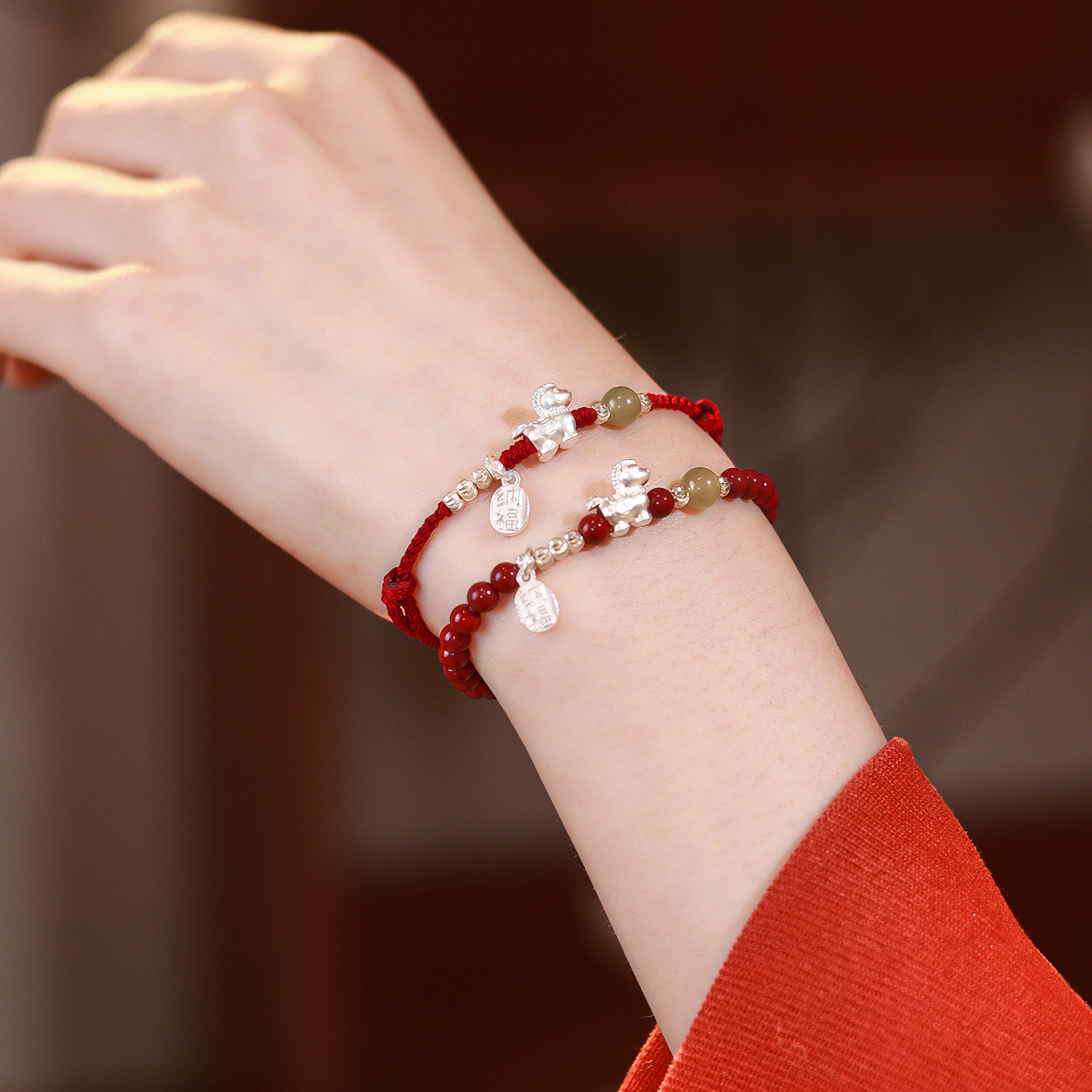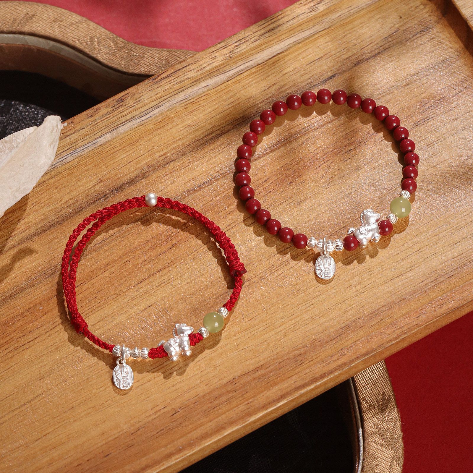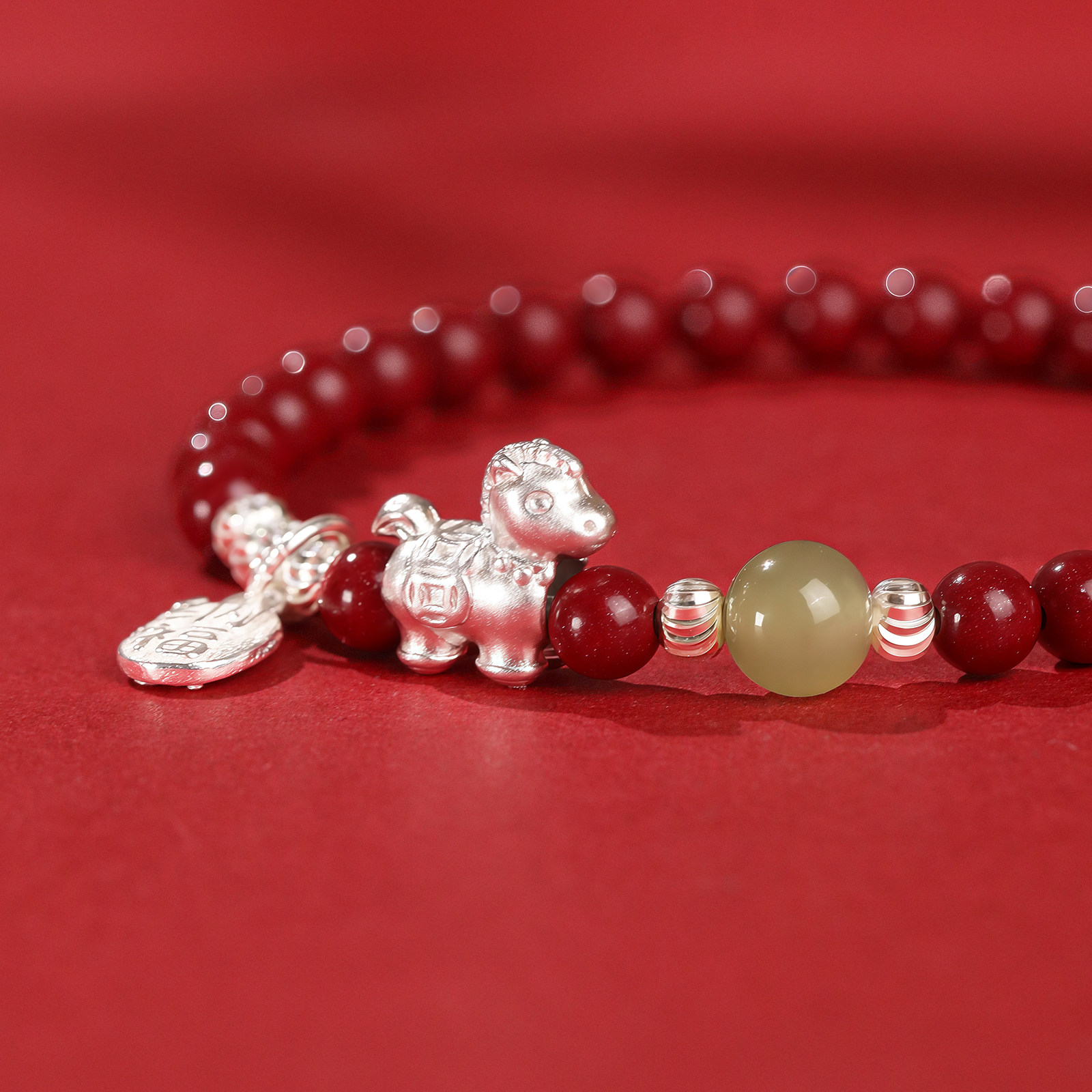 马踏红运天然朱砂手串正品 足银999马本命年红手绳手链叠戴 女款