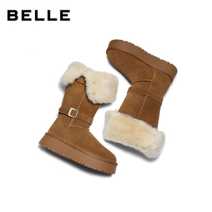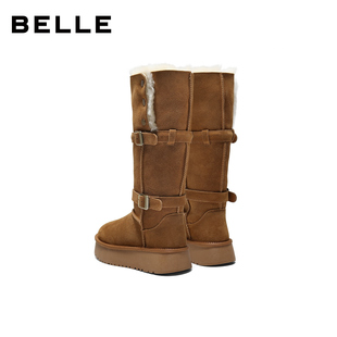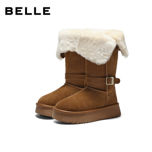 长筒靴B3029DG5 冬季 百丽厚底高筒翻毛雪地靴女新款 毛毛东北棉鞋