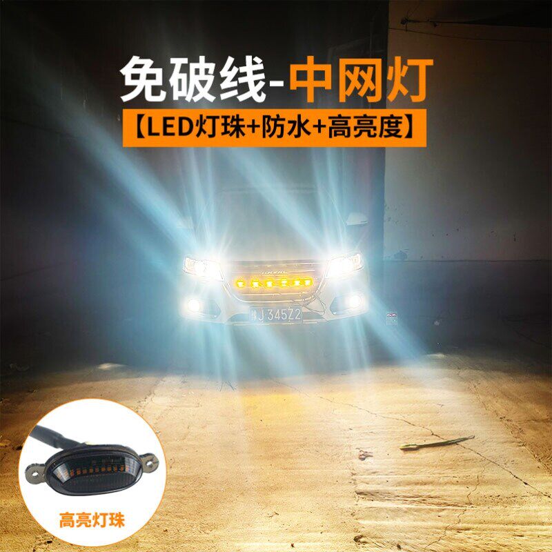 汽车LED中网小黄灯通用款 饰 轿车越野车皮卡中网前脸格栅灯SUV装