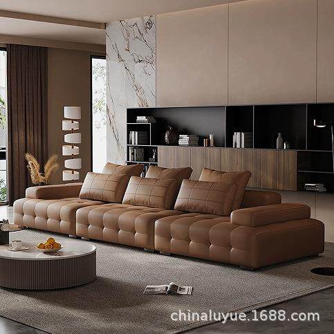 网红轻奢劳伦斯头层皮直排沙发简约现代休闲别墅客厅全真皮沙发
