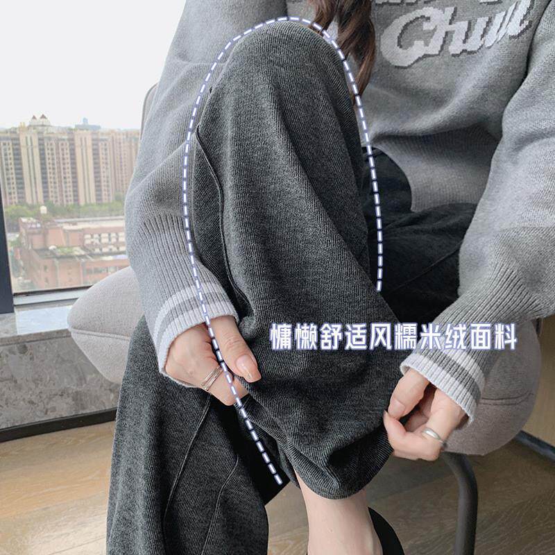 新款 秋冬加绒宽松慵懒直筒糯米裤 窄版 女垂坠感休闲长裤 阔腿裤 春季