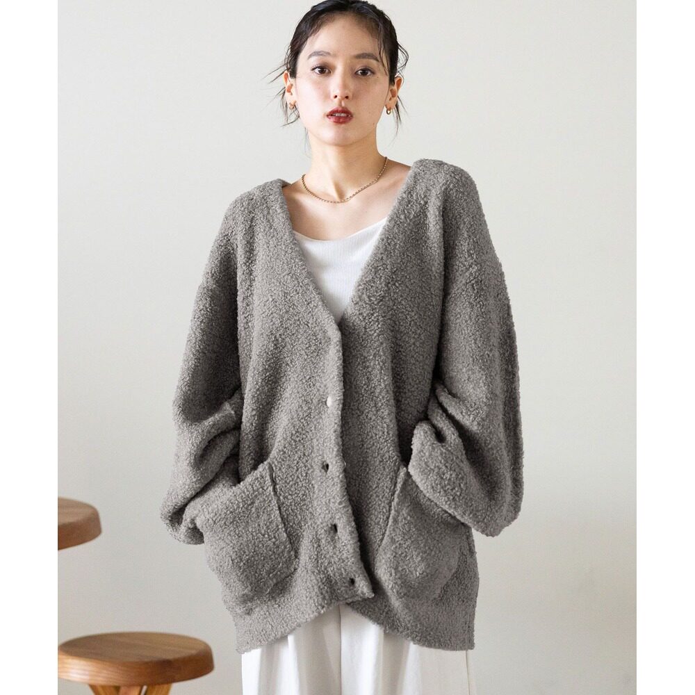 宽松仿毛绒针织开衫 女装 半高领双口袋 日本直邮RAGEBLUE 1h可退