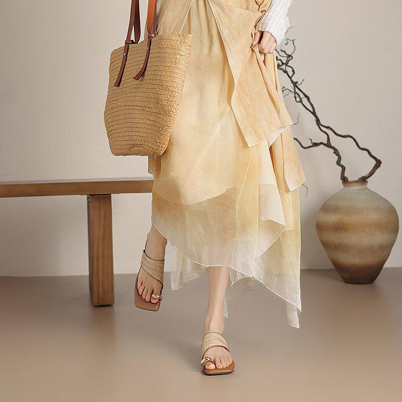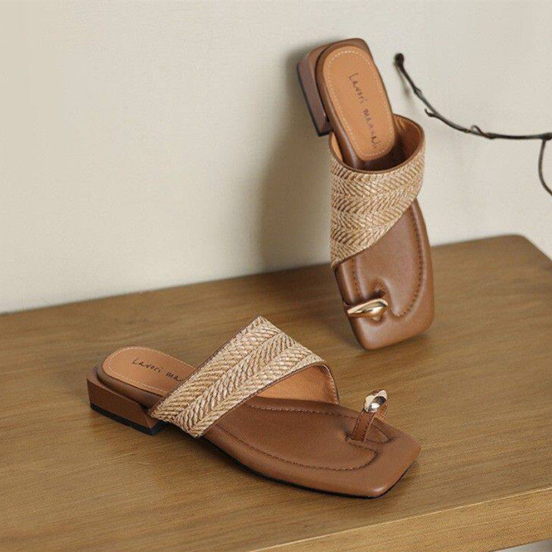 拖鞋 法式 2026高颜值夹趾海边方头配裙子沙滩鞋 粗跟凉鞋 女 外穿夏季