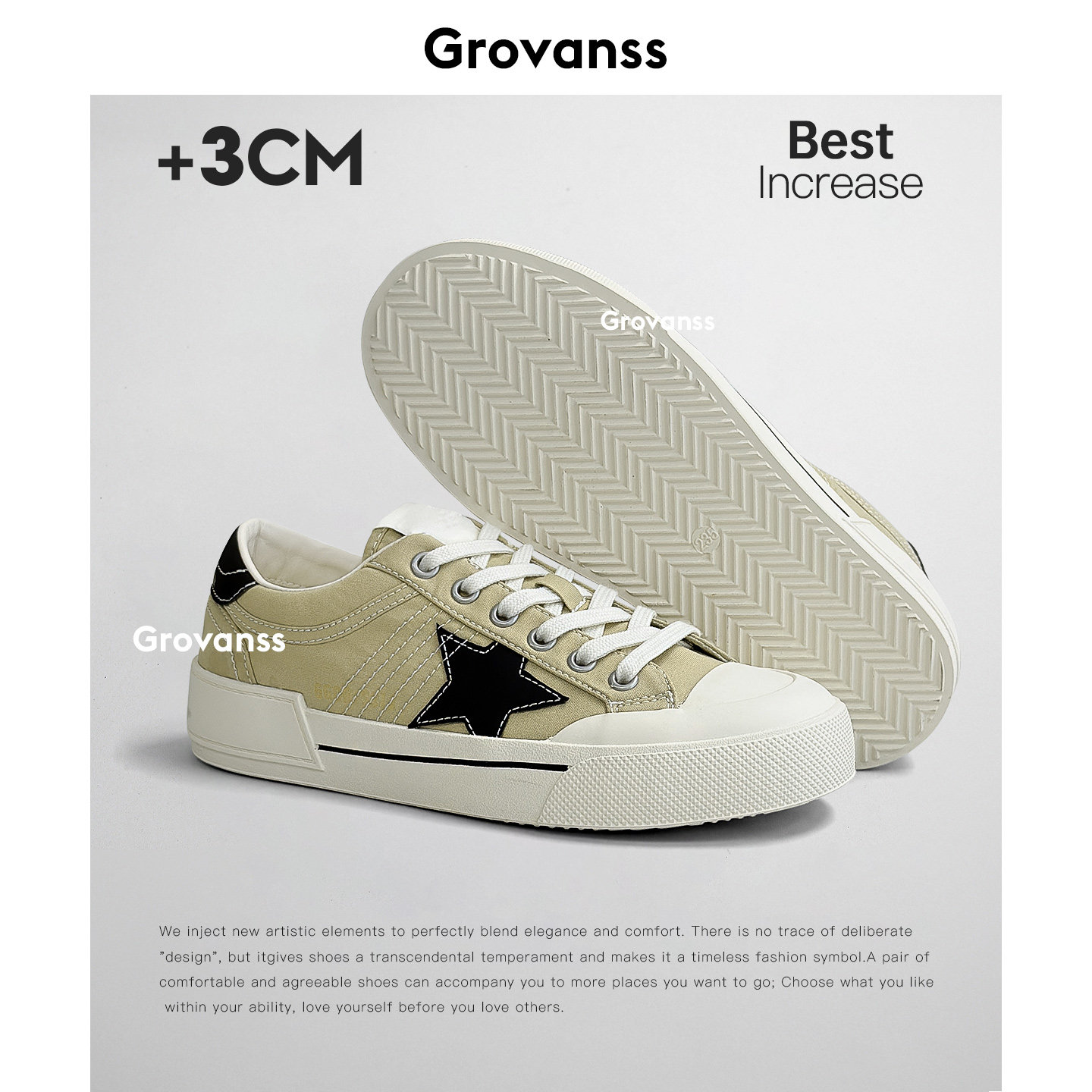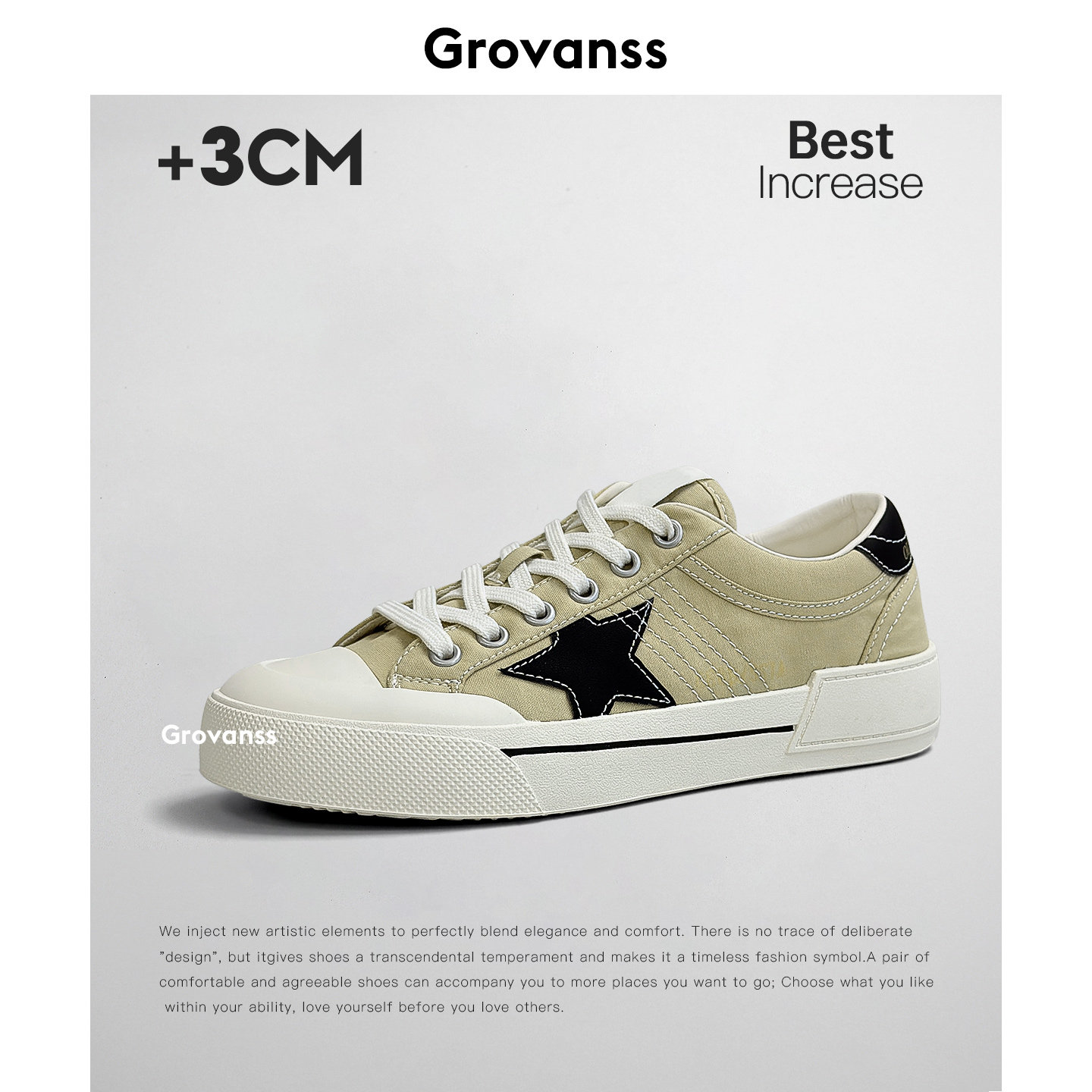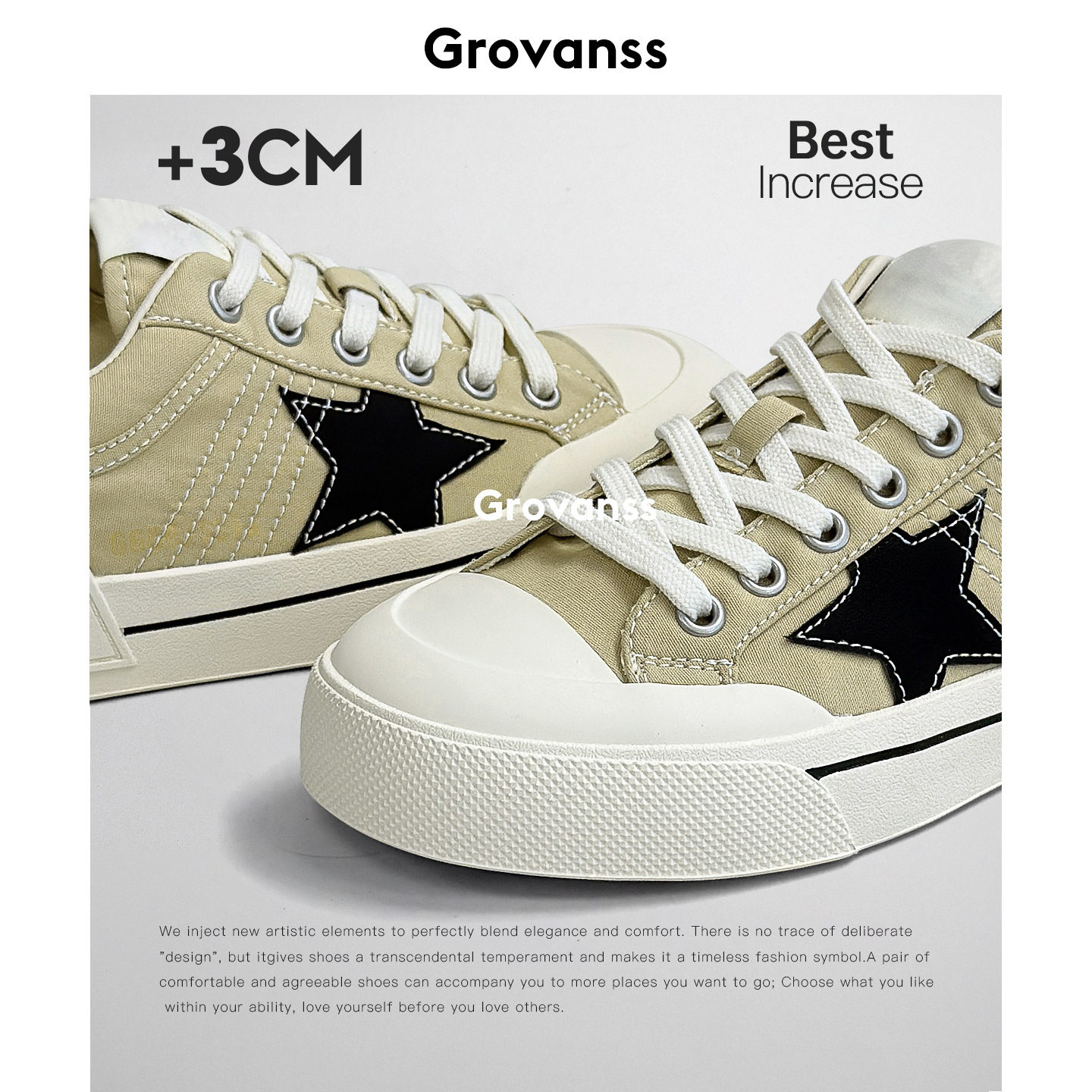 平底运动休闲系带浅口滑板鞋 高梵诗星星帆布鞋 松糕底板鞋 女鞋 夏季