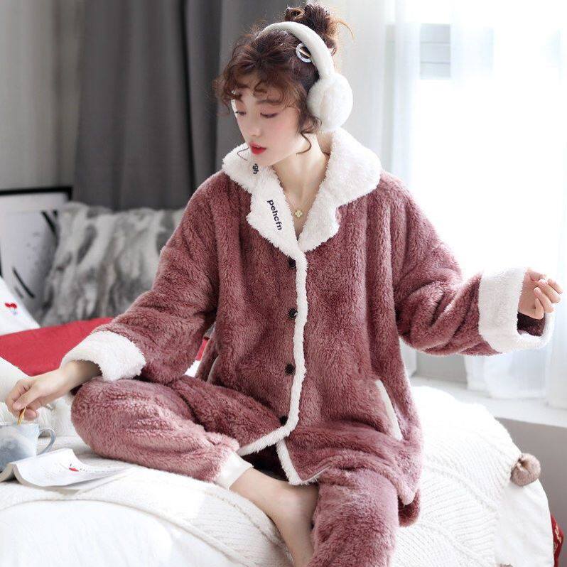 可爱春秋款 加厚冬天法兰绒套装 女士家居服 秋冬季 睡衣女珊瑚绒新款