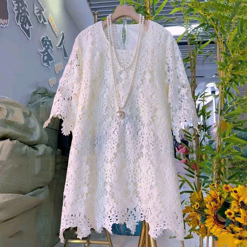 2026新款 春季 时尚 气质镂空雕花加衬显瘦时尚 胖妹妹大码 蕾丝衫 女装