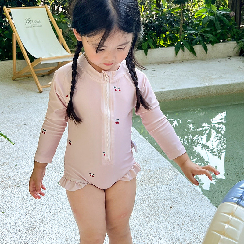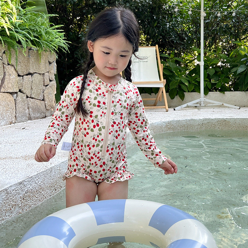 防晒泳衣女孩宝宝中小童洋气公主 速干三色碎花长袖 女童夏季 新款