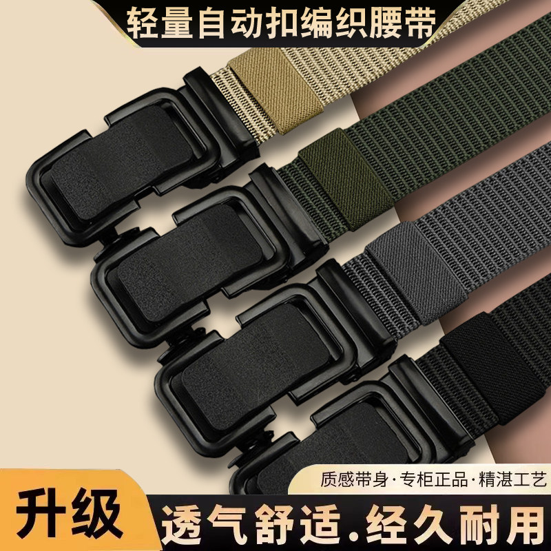 尼龙帆布腰带新款 自动扣男女户外软面耐磨军训多功能简约皮带工装