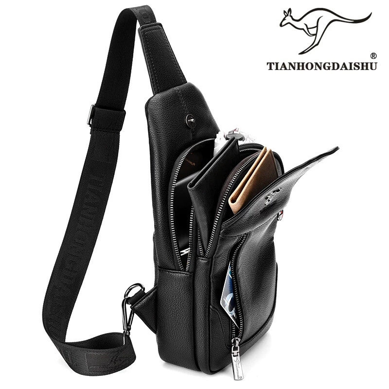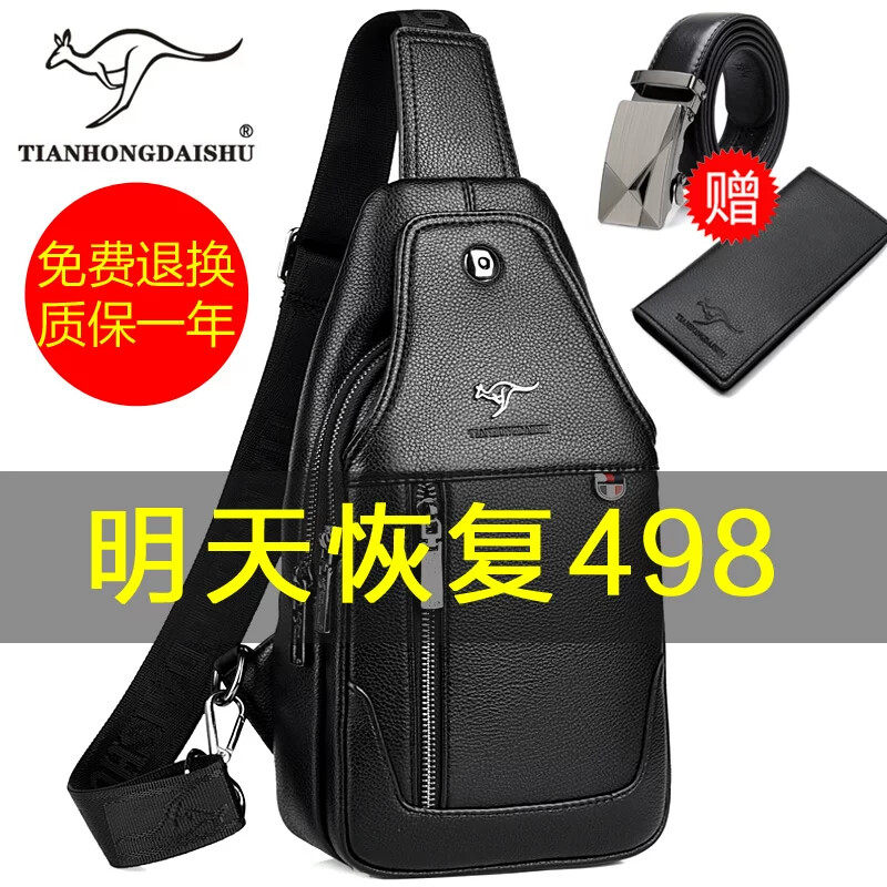 帅桐袋鼠男士 潮单肩包胸前包斜肩包休闲潮 胸包斜挎包真皮2025新款