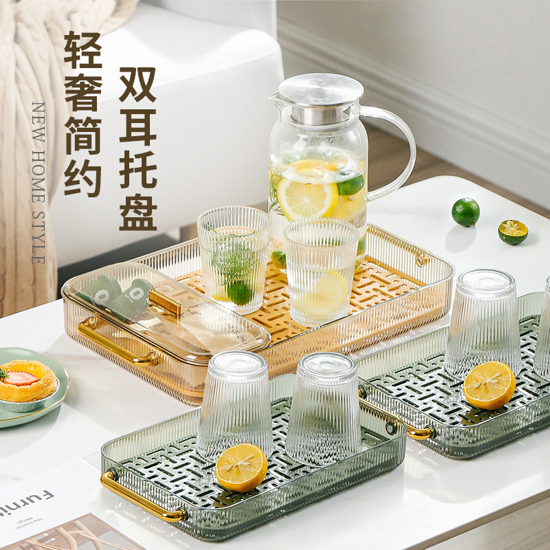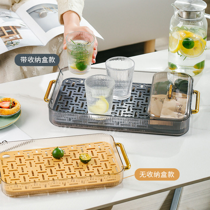 茶盘家用客厅干泡台轻奢茶具杯子架放茶杯水杯长方形双层沥水托盘