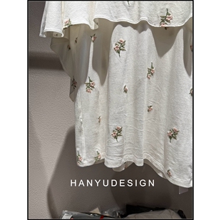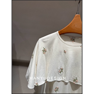 白色羊毛小花朵刺绣短袖 26早春新款 T恤女 韩钰DESIGN