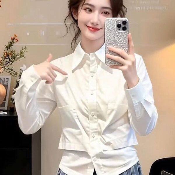 极简风百搭通勤白色上衣女2026早春设计感百搭日常高级感休闲衬衫