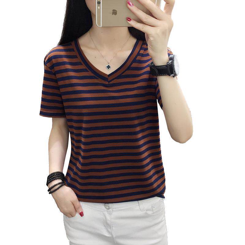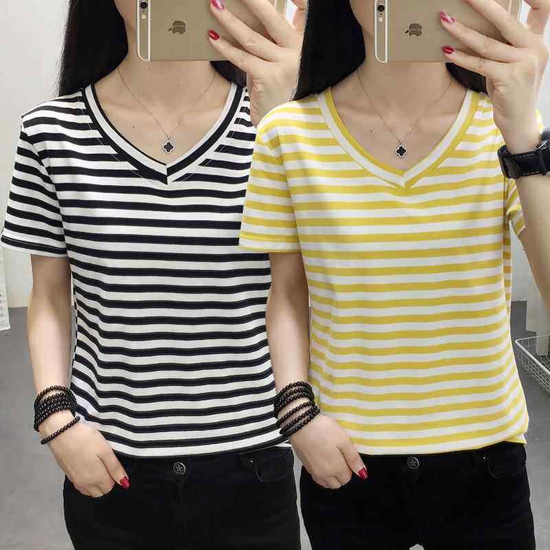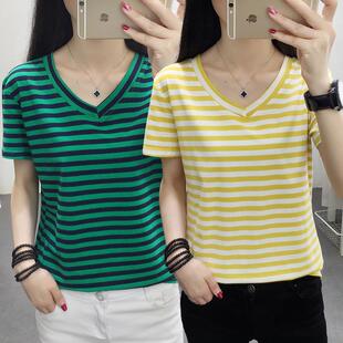 纯棉条纹短袖 加肥加大码 2024新款 200斤胖mm夏装 t恤女丅体桖潮 女装