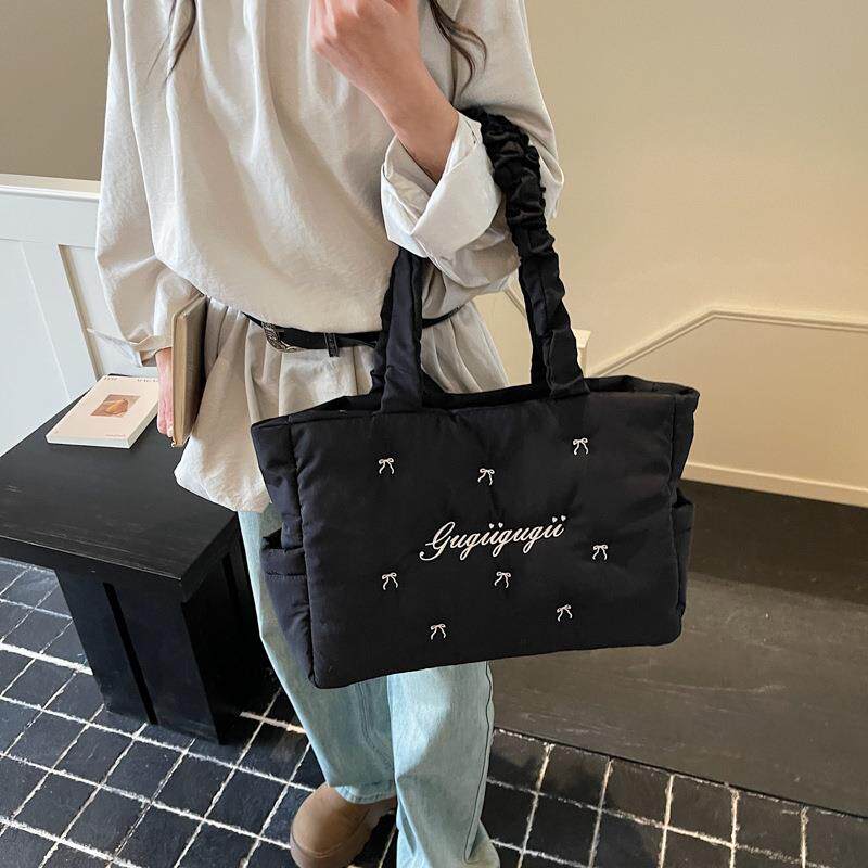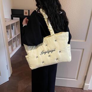 单肩包 褶皱云朵包质感刺绣腋下包百搭时尚 大容量包包女式 新款