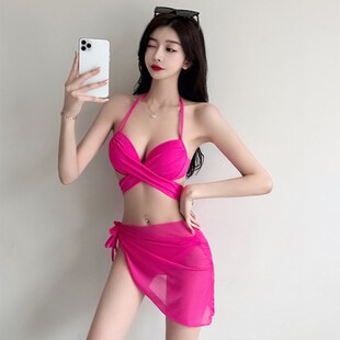 极速泳衣女性感比基尼裹裙三件套钢托聚拢三点式 分体X三角度假温
