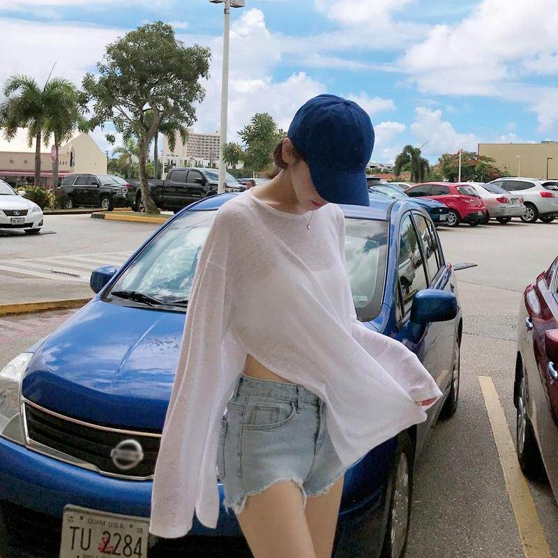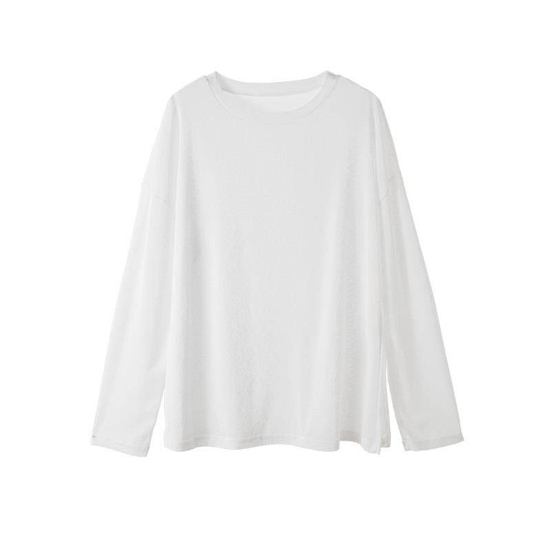 外穿内搭防晒罩衫 大码 T恤上衣女春2025新款 开叉长袖 ins潮 胖mm薄款