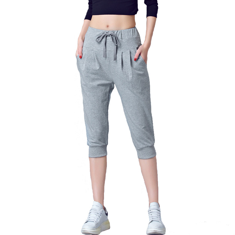 夏哈伦裤 女宽松高腰弹力束脚裤 薄款 大码 新款 胖mm休闲七分裤 运动裤