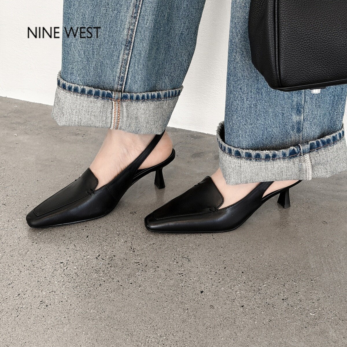 女细跟方头后空百搭高跟鞋 玖熙复古风包头凉鞋 West 奥莱专供Nine
