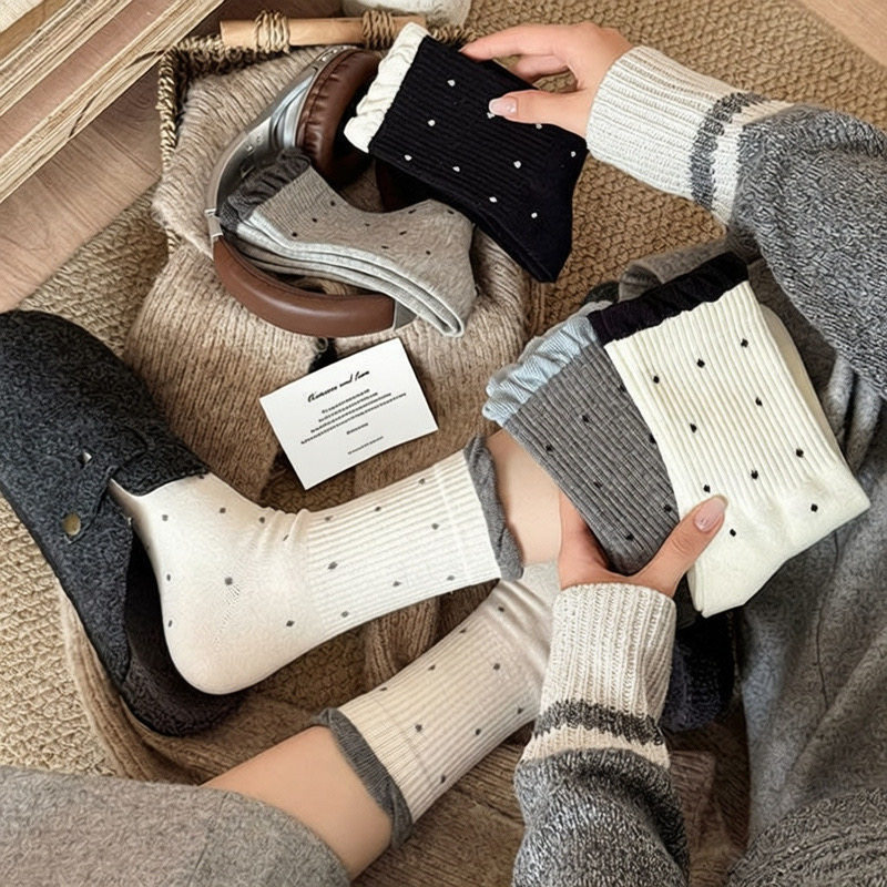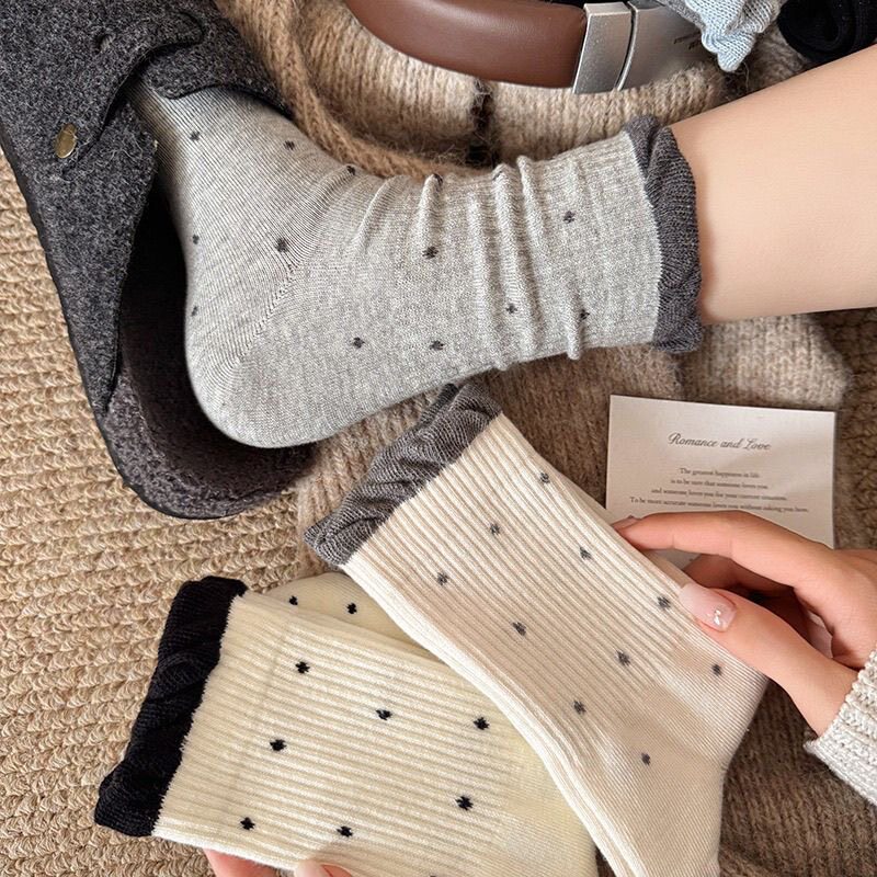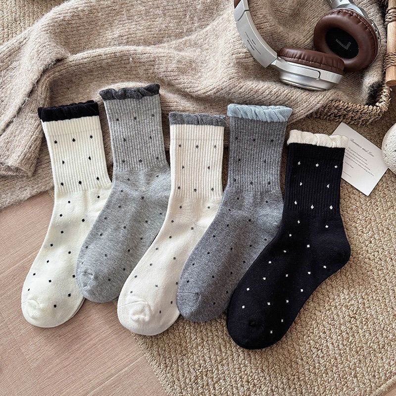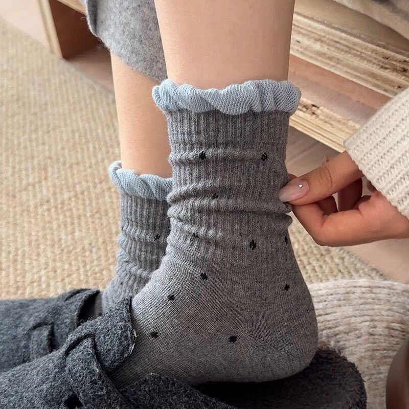 袜子女春秋点点韩系温柔花边百搭长中筒波点复古多巴胺学生堆堆袜