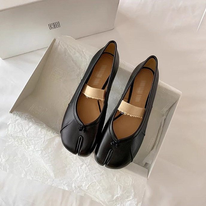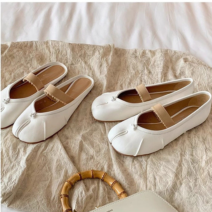 女半拖鞋 葡萄妈同款 小牛皮圆头分趾猪蹄平底玛丽珍单鞋 本 两个版