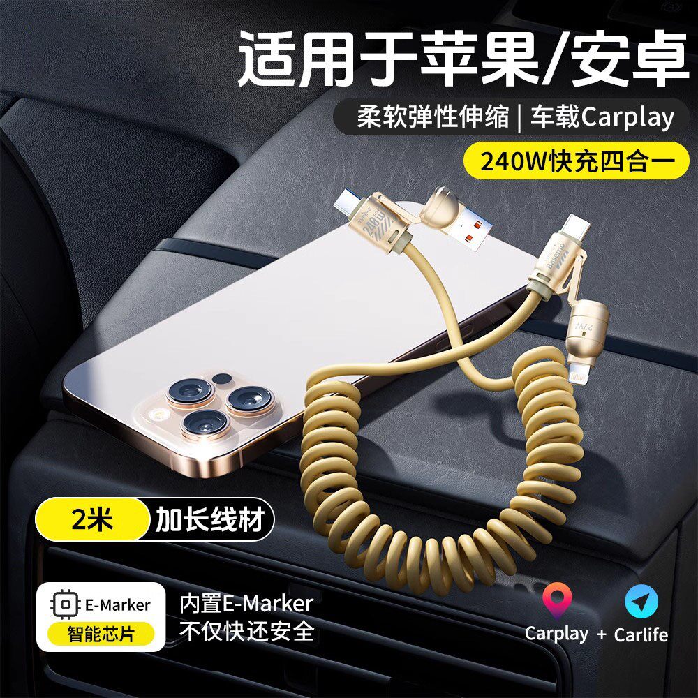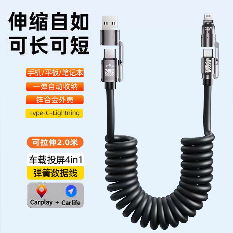 240W超级快充typec弹簧数据线6A闪充车载充电线器适用苹果华为