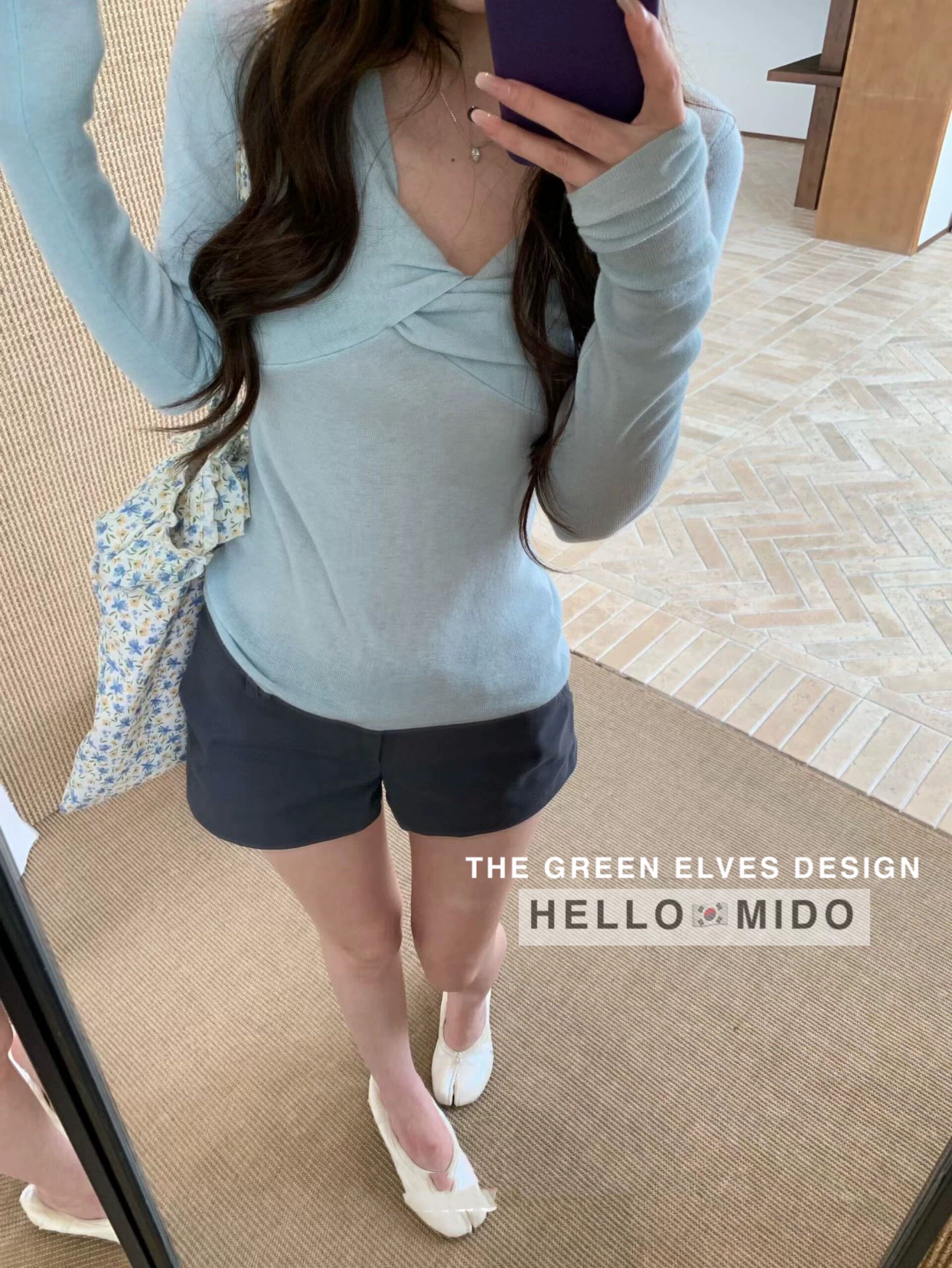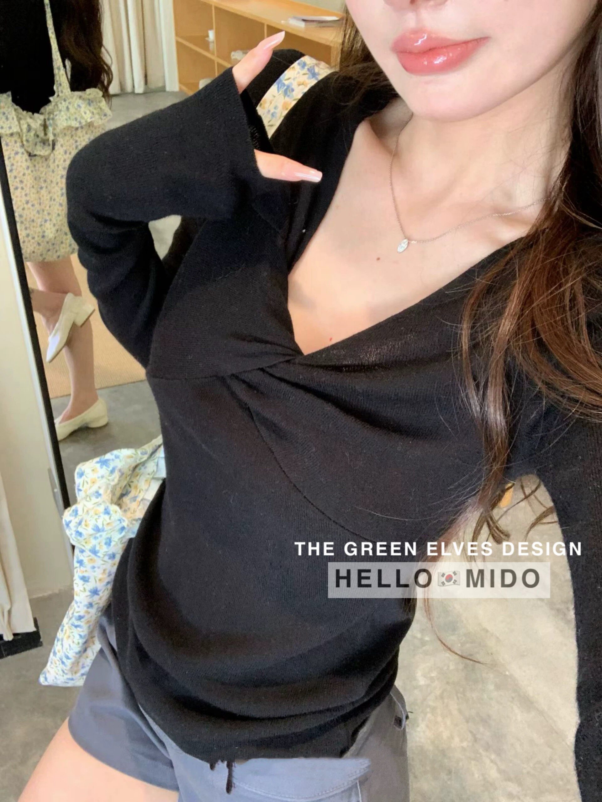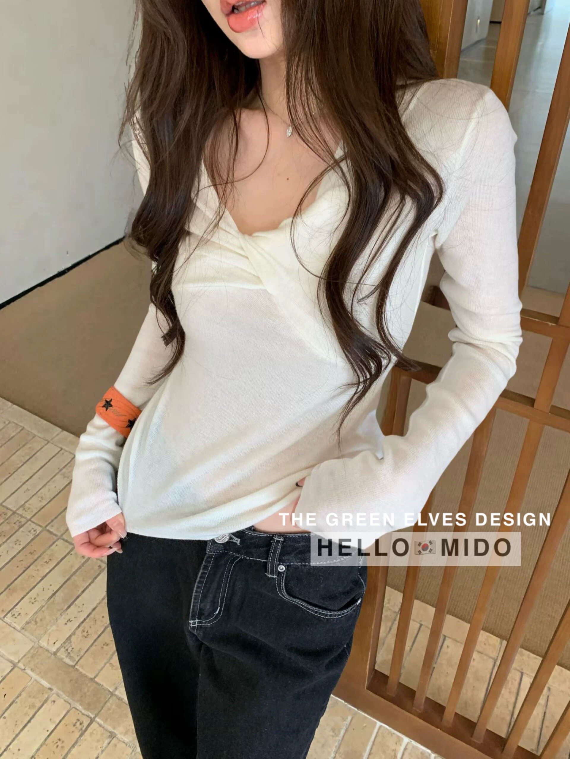 显瘦打底衫 韩系修身 上衣 正肩T恤2026春季 V领扭结长袖