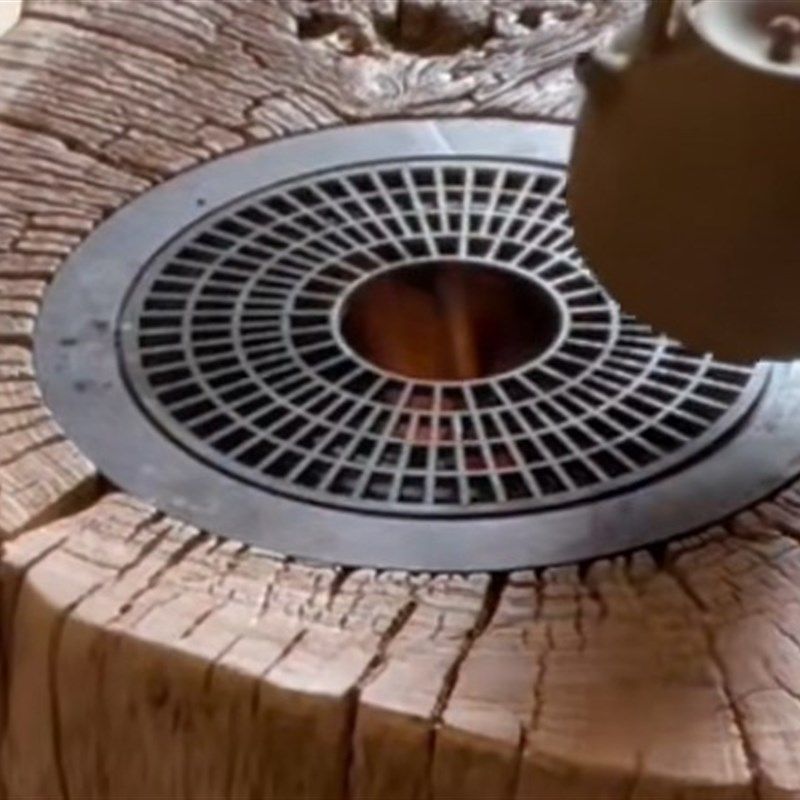 炭炉无烟碳烧烤大墩子款 铁篦子铜篦子平面回纹面板配 车轴车轱辘款