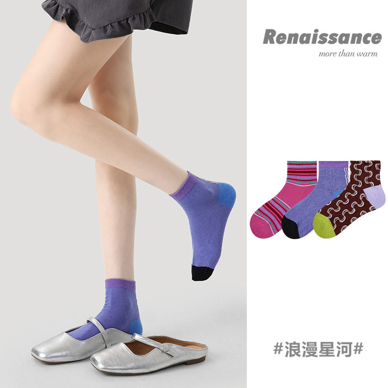 拼色条纹透气吸汗运动圆点短 个性 Renaissance原创设计女夏季 薄款
