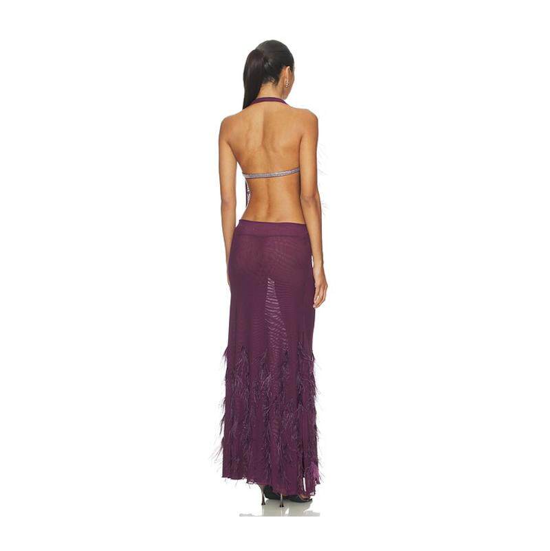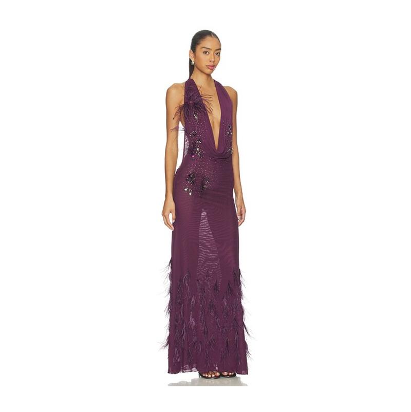 London 斗篷式 女士 长款 羽毛 连衣裙 Jaded