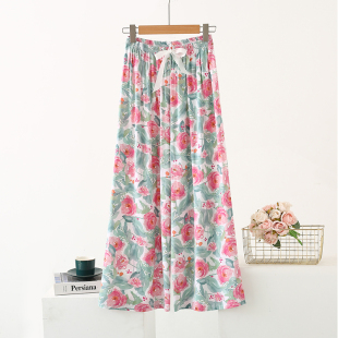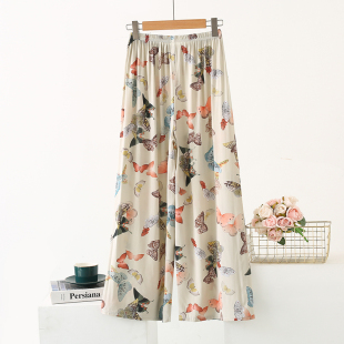 松紧腰人造棉居家裤 宽松舒适可外穿棉绸休闲裤 女 女薄款 印花阔腿裤