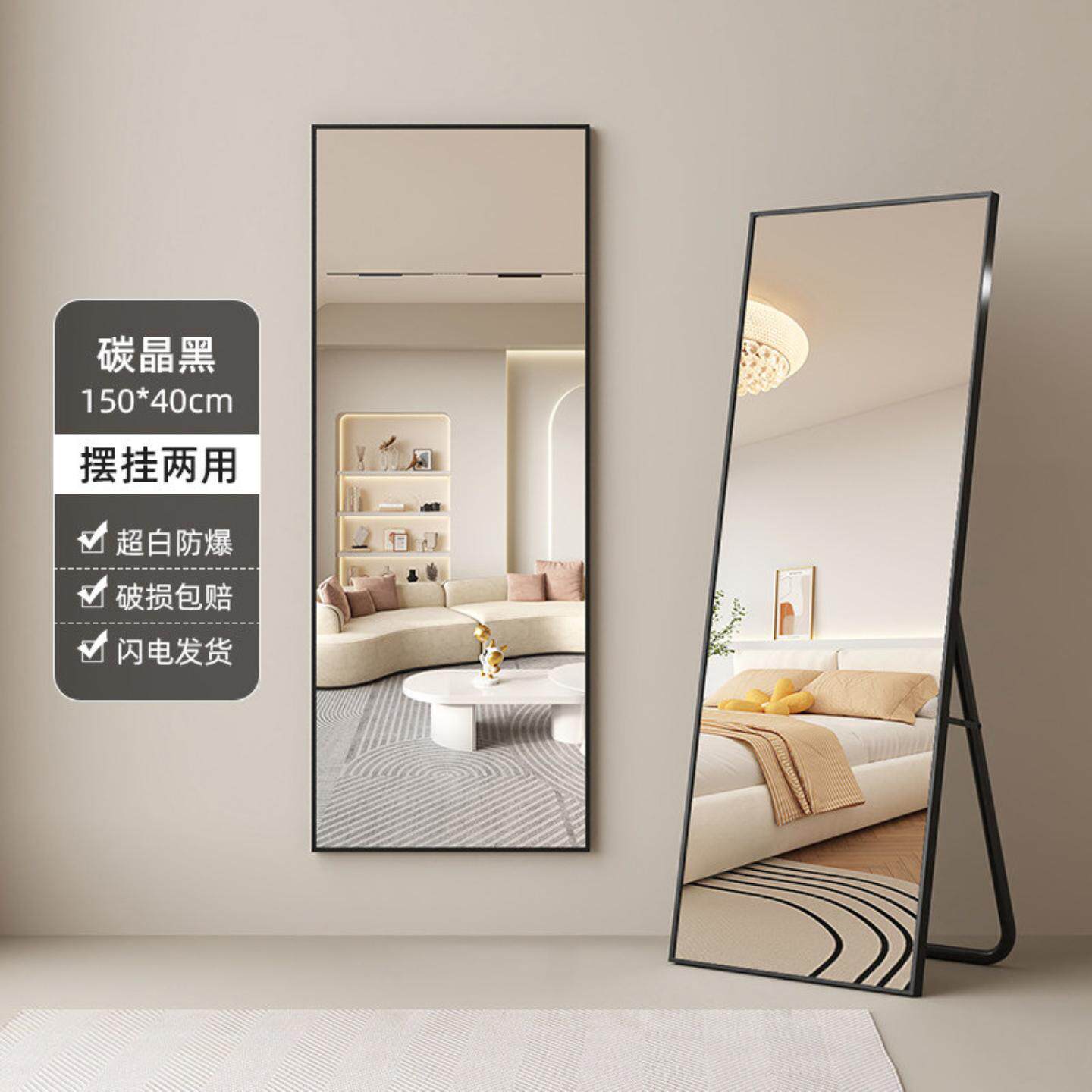 壁挂式 全身镜穿衣镜家用试衣镜简约现代挂衣架一体镜玄关贴墙镜子