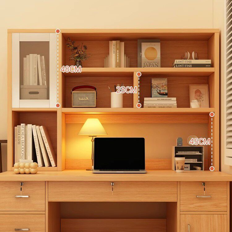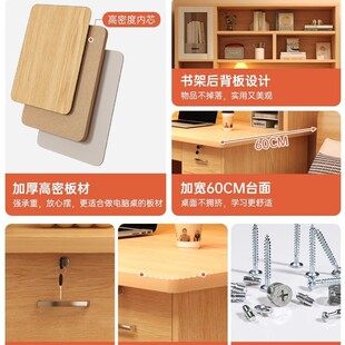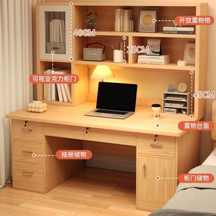 稀缺质感实木电脑桌台式 书桌书架书柜一体桌卧室写字台桌学生家用