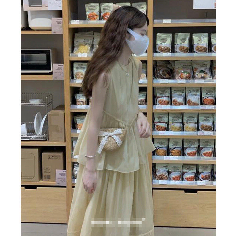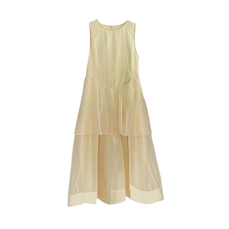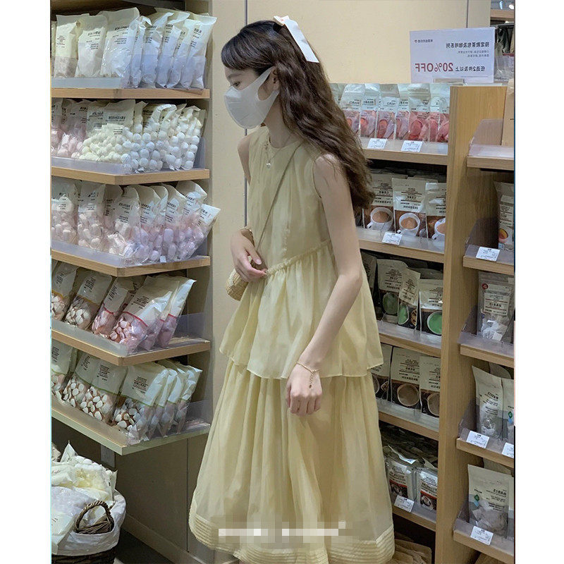 优雅少女感双层蛋糕裙摆简约温柔风连衣裙子 法式 夏季 未闻花名短袖