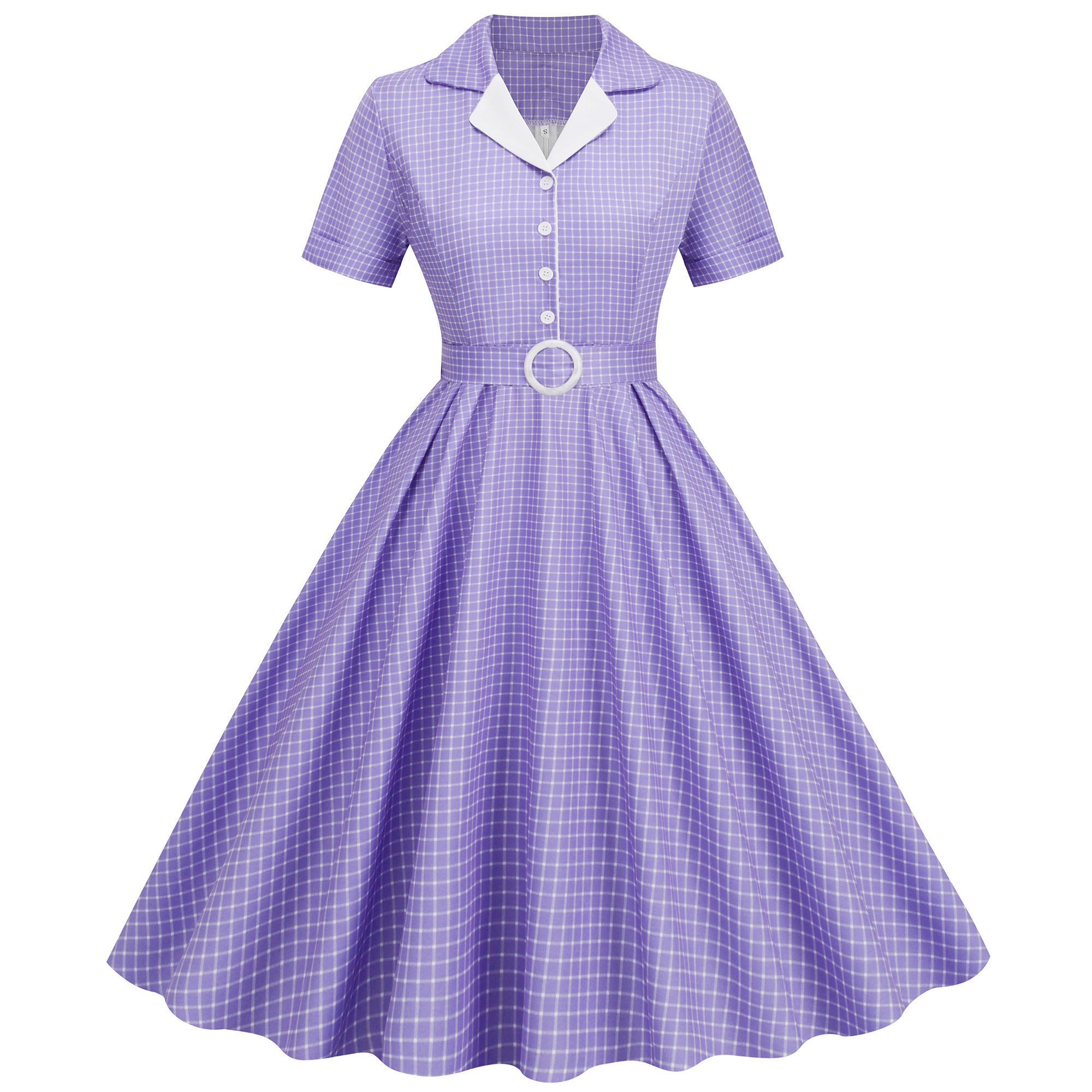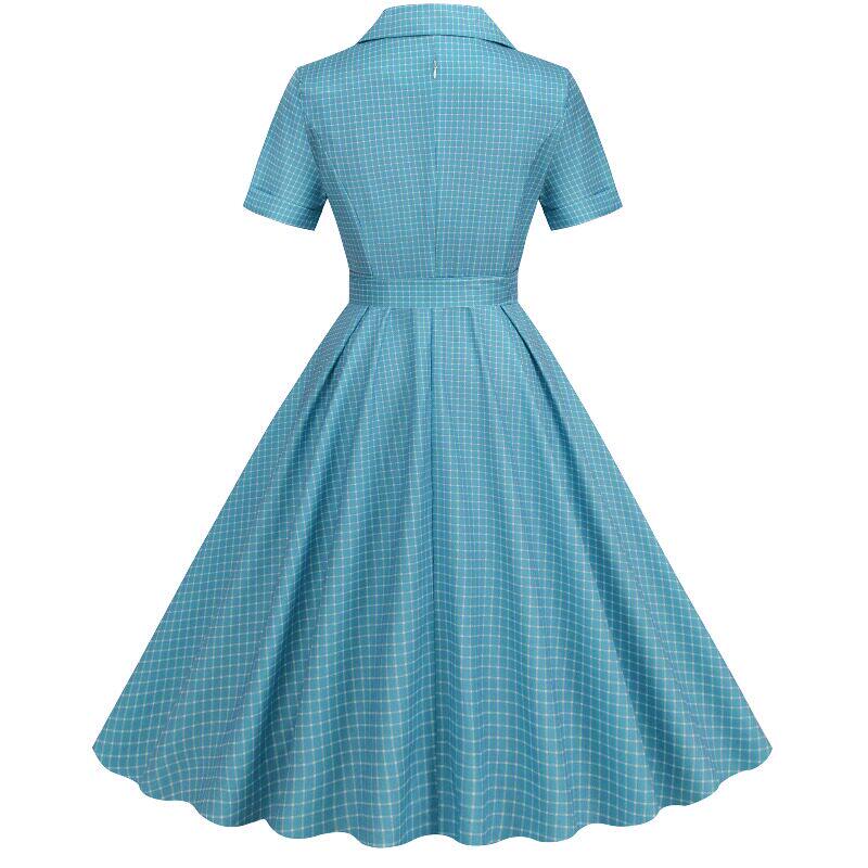 高腰显瘦短袖 领格子修身 大摆连衣裙DRESS 淑女西装 覆古赫本风夏季