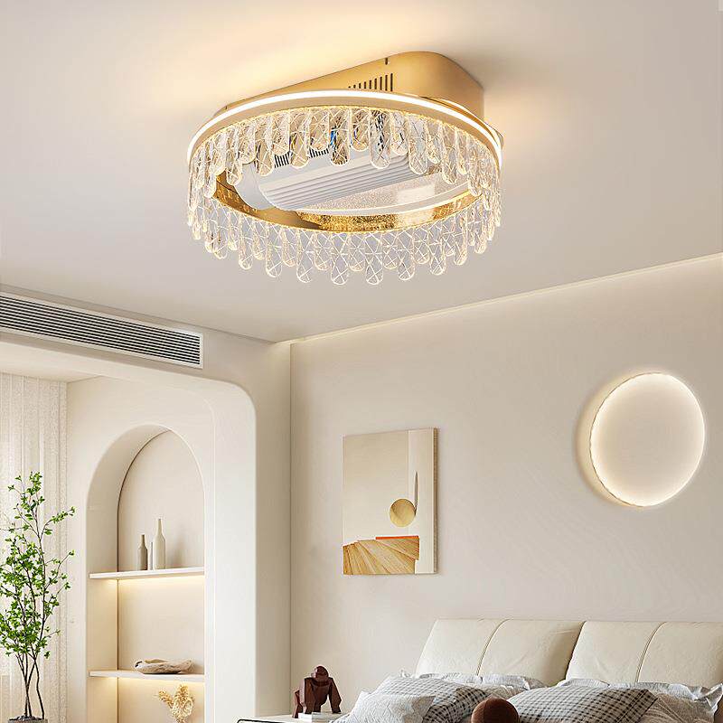 卧室灯无叶风扇灯轻奢简约圆形2026年新款 家用房间书房水晶吸顶灯