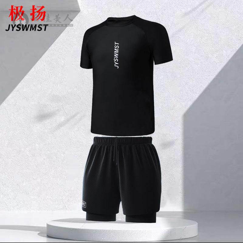 男大码 2025新款 双层速干游泳裤 上衣男款 防尴尬 男士 泳裤 泳衣套装