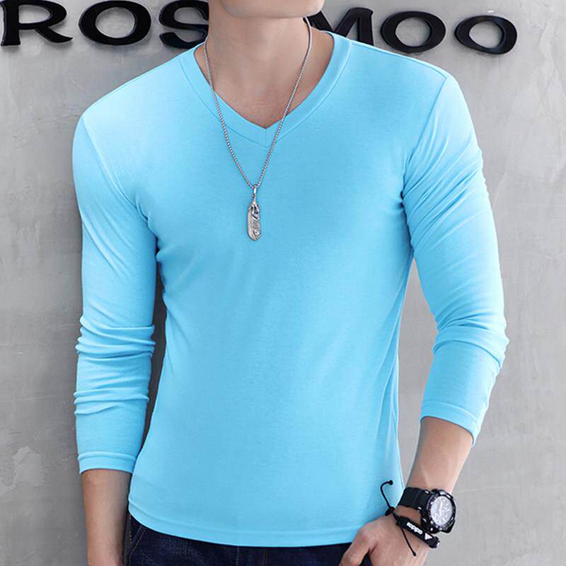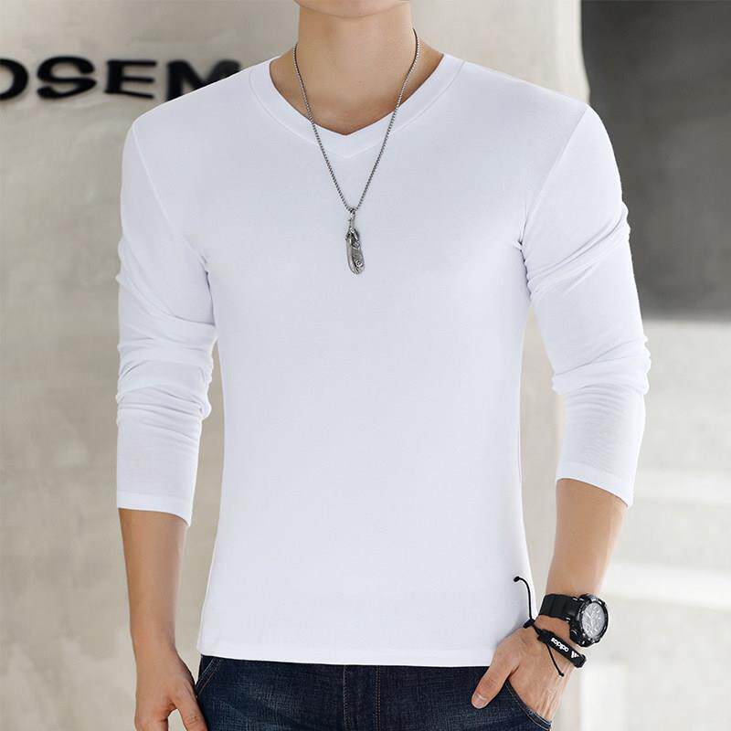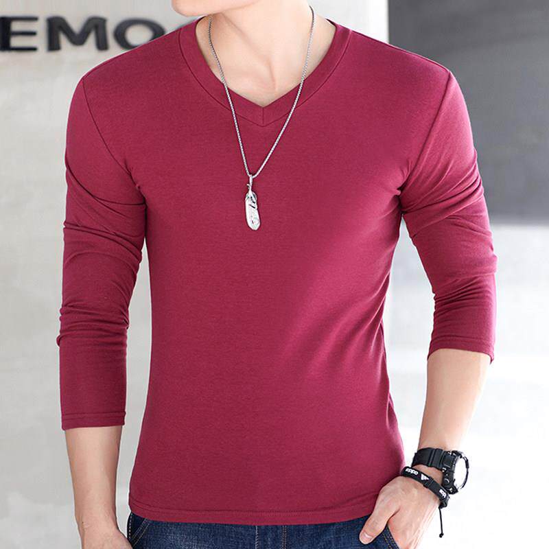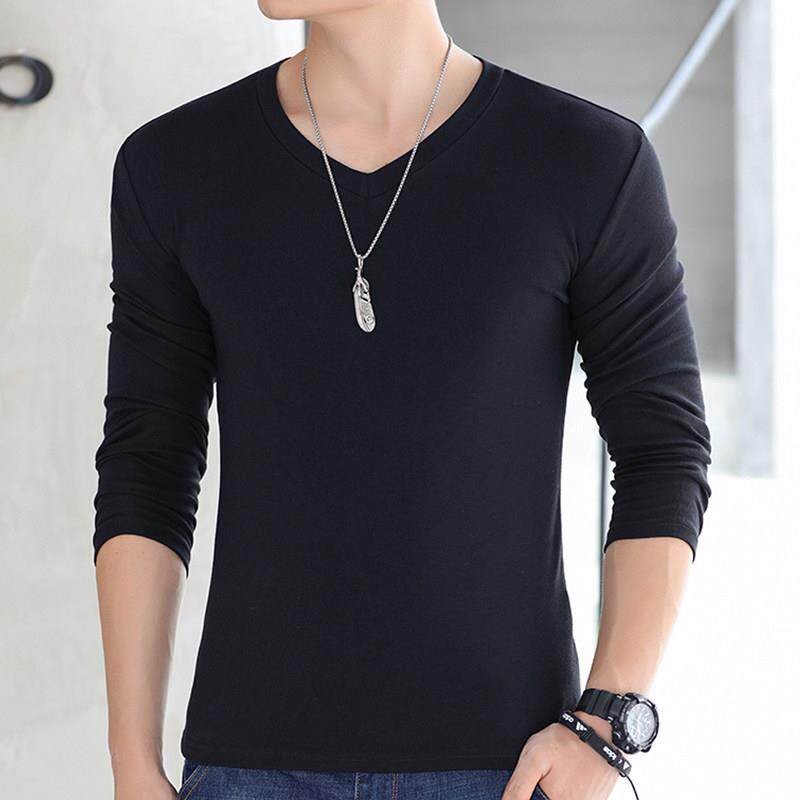 韩版 男t恤潮牌鸡心V领季 纯色体恤上衣服0323k 长袖 2020潮流新款
