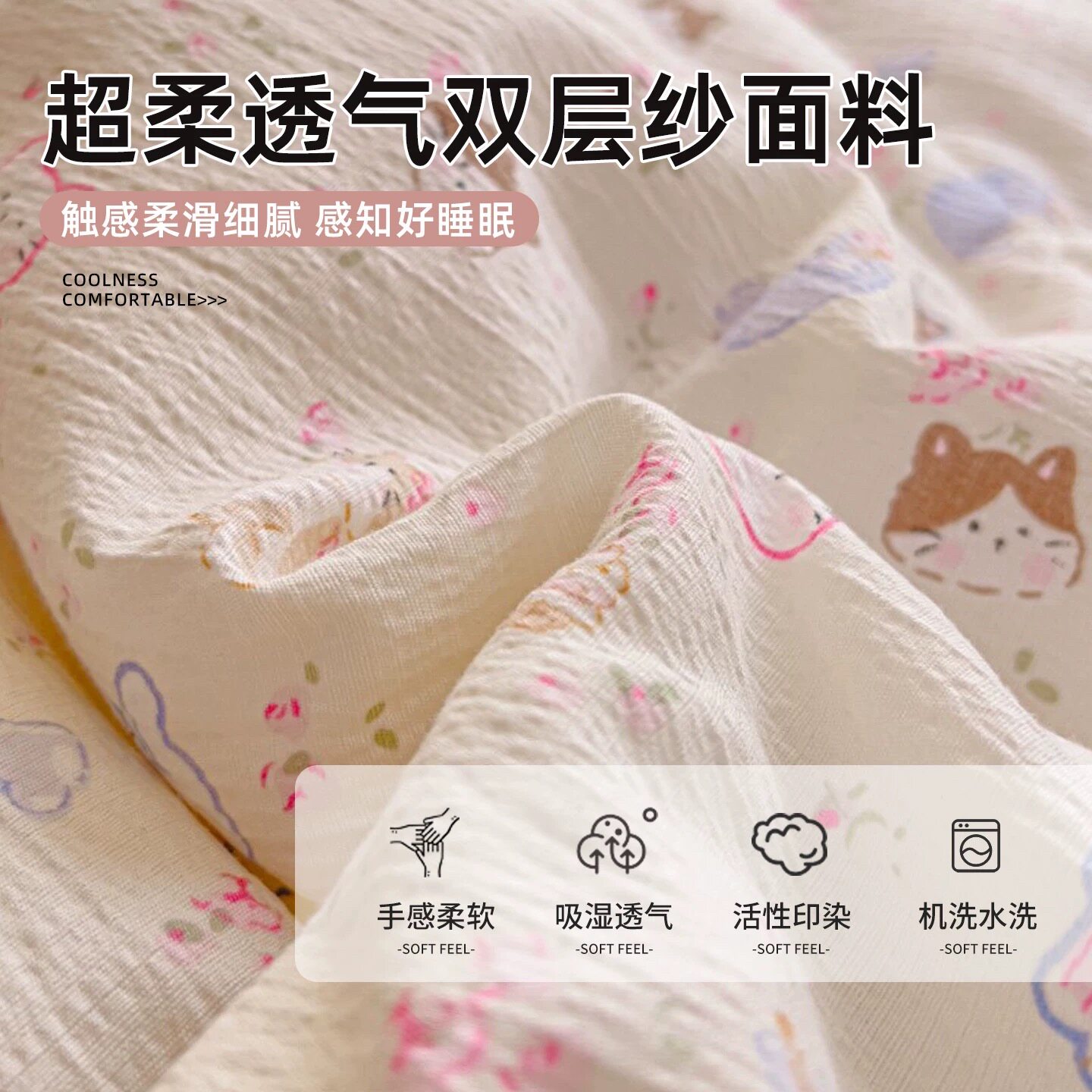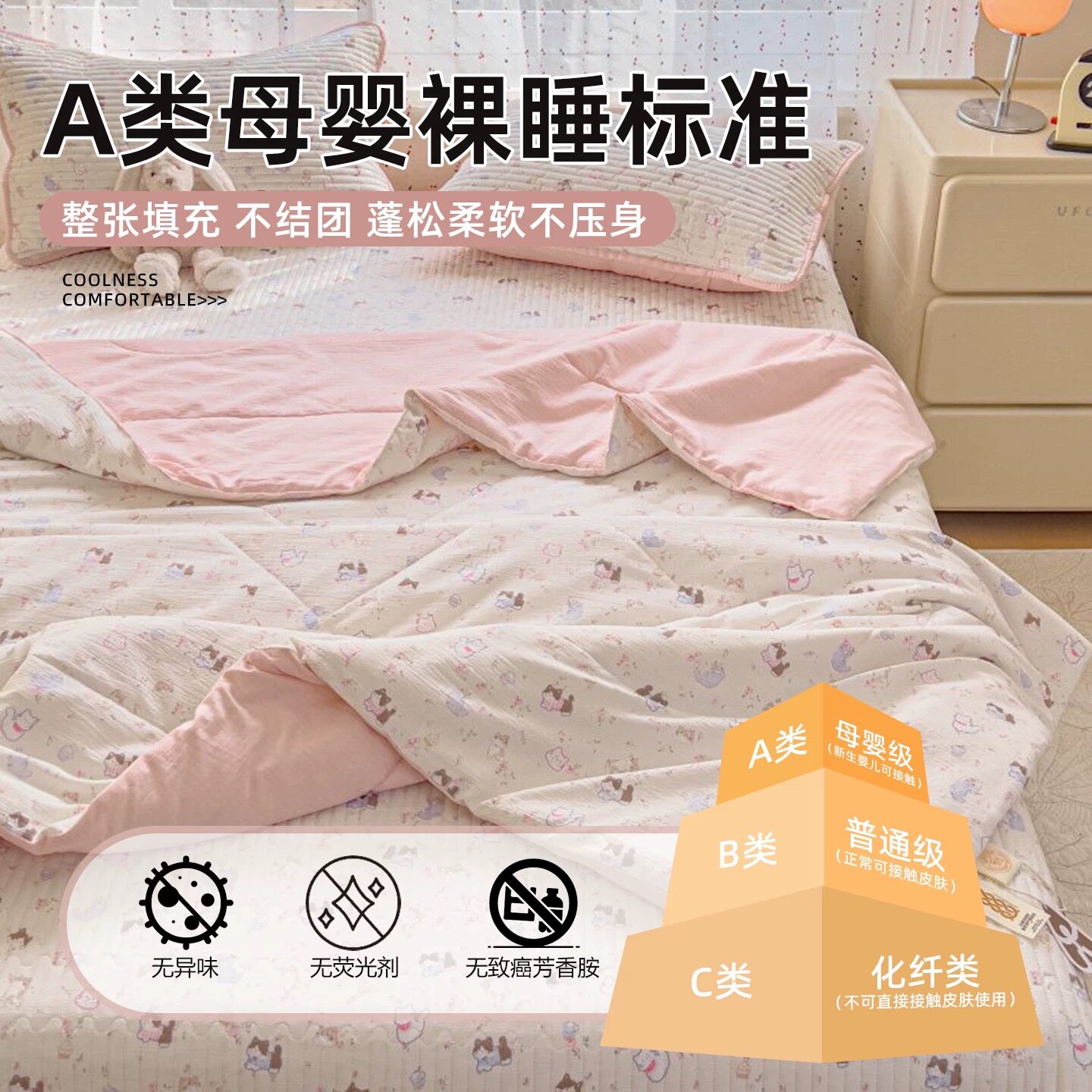 A类夏被四件套空调被夏凉被纯棉全棉可机洗学生宿舍单人薄被子芯4