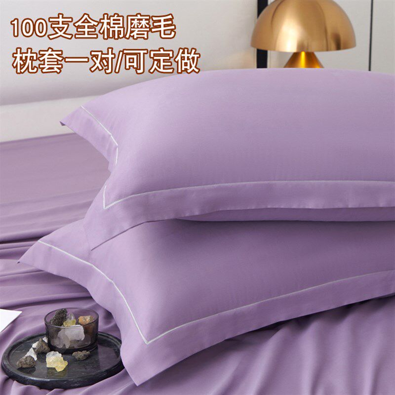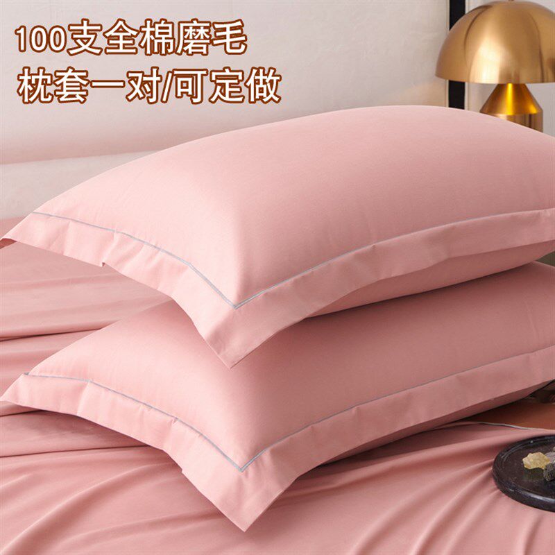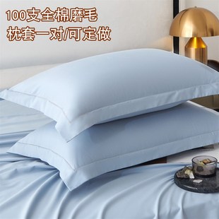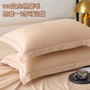 定做酒店纯色全棉100支长绒棉磨毛宽边枕套51x91 60x90枕头套一对