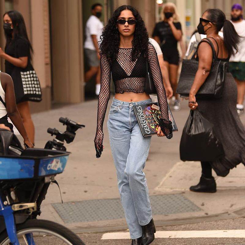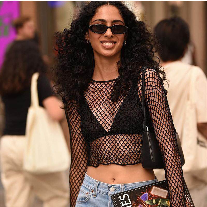 hollow mesh cover and short top white over Black dress