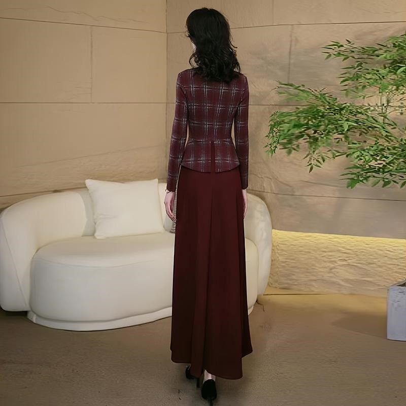 复古格子加厚连衣裙2025春秋新品 假两件通勤气质显瘦优雅长裙3065
