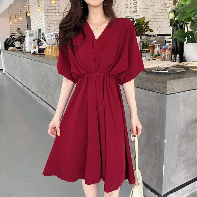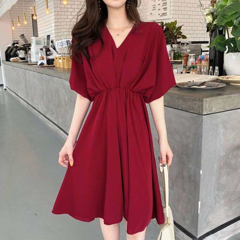 French style Tight Red Slimming Womens Waist Elegant Dress