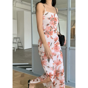 闪闪家 OUPPT温柔气质印花吊带连衣裙 韩国东大门代购