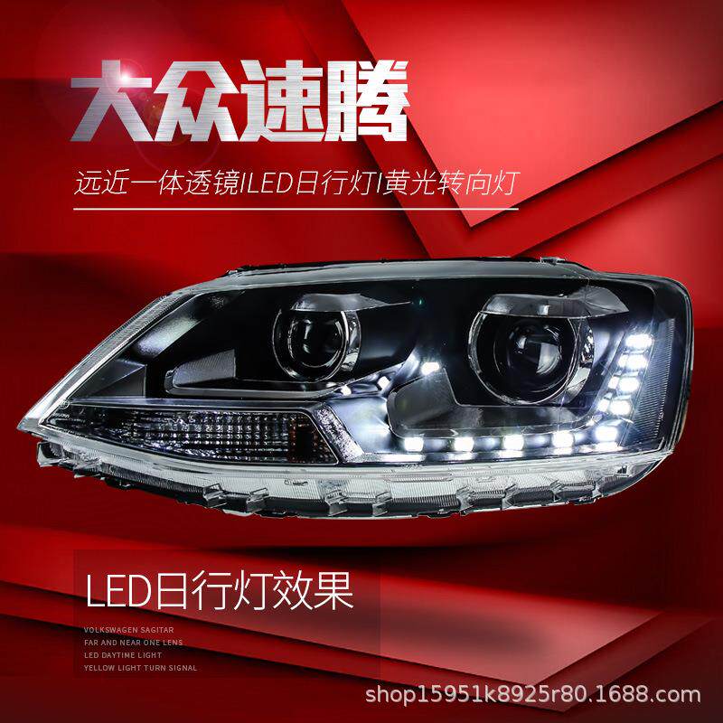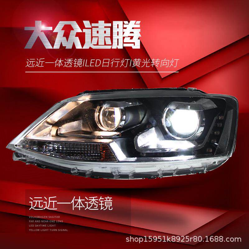 LED日行灯双透镜氙气大灯总成 欧版 适用于12 18新速腾大灯总成改装