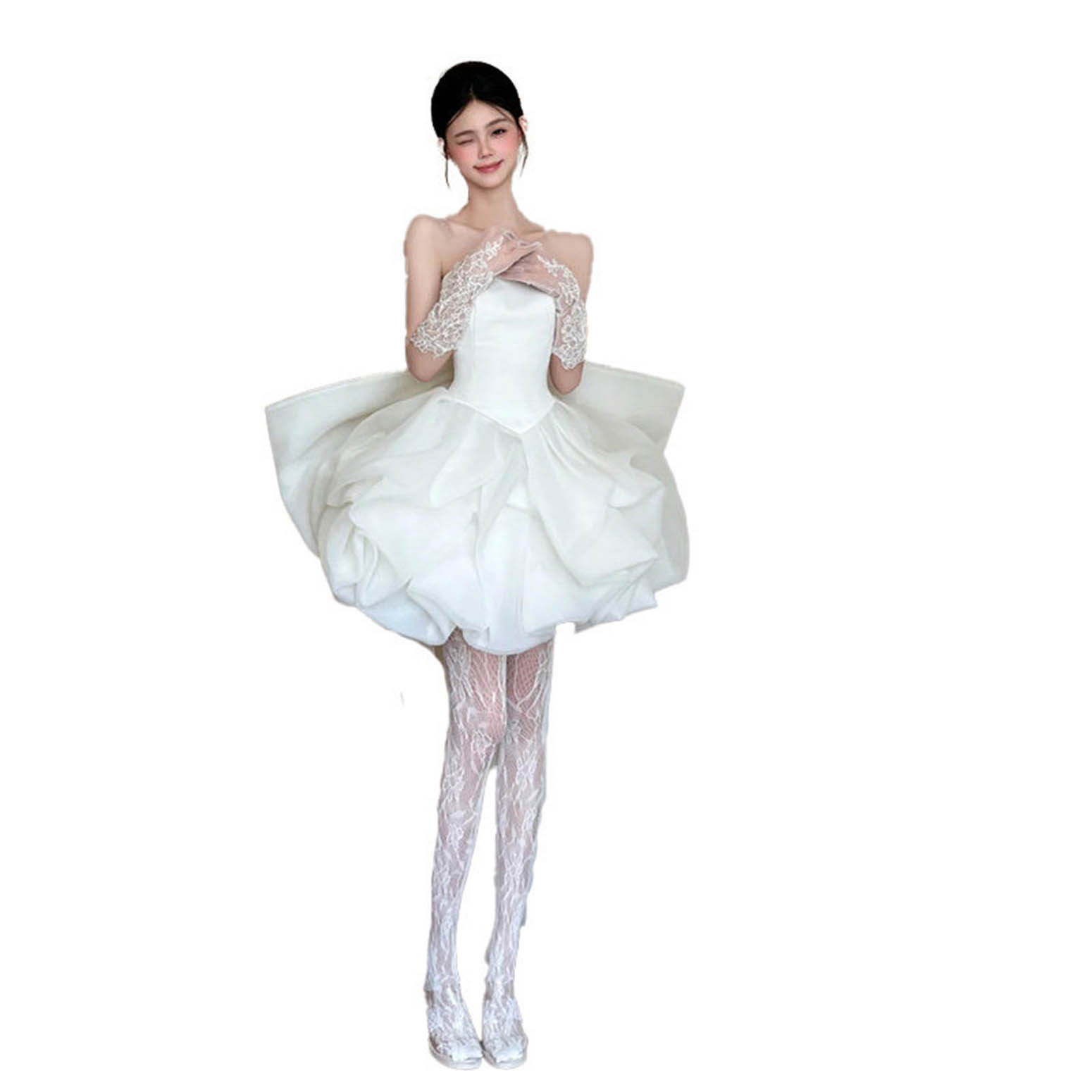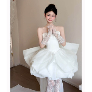 晨袍小个子绝美森系超仙新娘抹胸礼服领证登记连衣裙生日聚会短裙