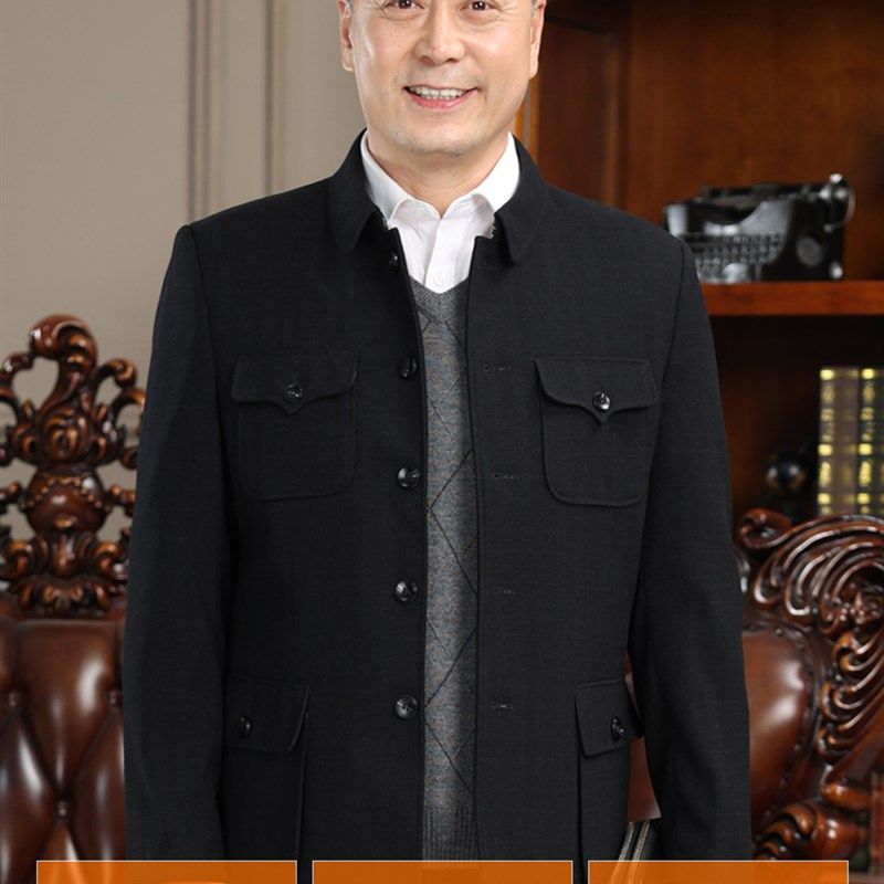 中山装 爸爸外套春秋款 中老年人男装 衣服上衣男中山服春季 老人春装